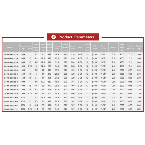 *Note: For SN-WR-H series, 180° wrap angle for MRL application, 0.45~0.5 balance factor.