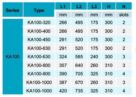 SN-KA100 | 630 | 0.5 | 100 | 2×30-65 3×30-65 | 2.2 | 110 | 191 | 8 | 6 | 25.6 | 16 | |